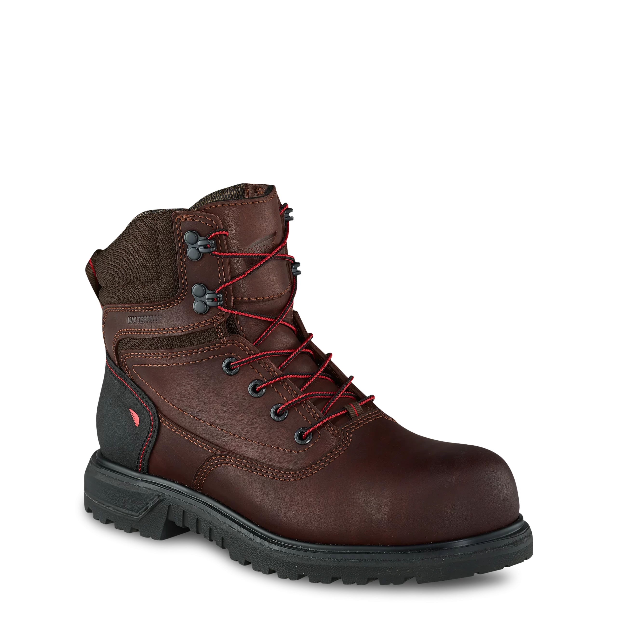 Stay comfortable and productive in this durable, heavy-duty boot with non-metallic safety toe protection. Red Wing waterproof leather and best-in-class GripTek rubber outsole keep you safe and surefooted in wet conditions, while triple-stitched toe and heel overlays enhance toughness. The PU midsole and Quadrex V2 footbed uphold exceptional all-day comfort. Designed specifically to fit the unique shape of the female foot.