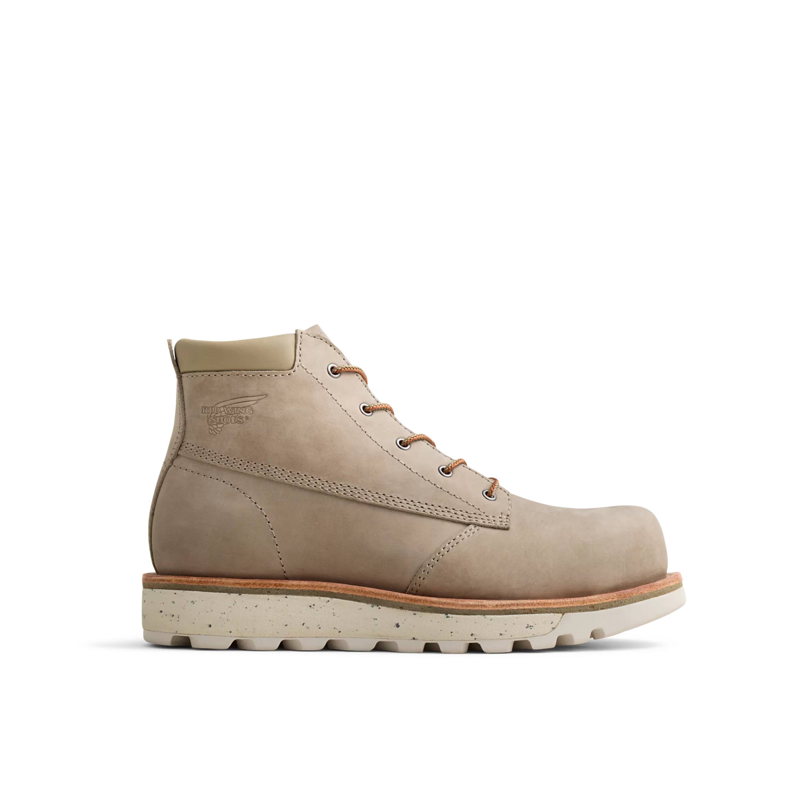 Designed for a woman’s foot, this lightweight, modern-looking version of an iconic Red Wing work boot provides superior stability, superb underfoot feel and all-day comfort for a variety of heavy-duty work environments. Advanced eco-friendly materials are incorporated throughout. This specific style is unlined, offering optimal breathability for working in warm weather, while a non-metallic safety toe, electrical hazard protection and best-in-class slip resistance provide confidence on the jobsite. The LiteTred crepe outsole offers excellent stability when encountering uneven terrain. Traction Tred Lite will keep you surefooted when on the move, making it ideal for trades such as distribution, construction, and manufacturing.