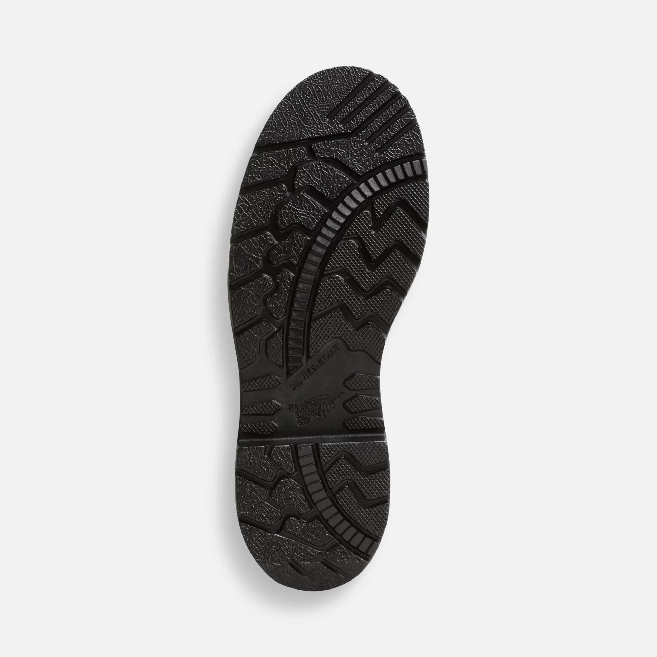 This heavy-duty, easy-on/easy-off boot with steel safety toe protection significantly reduces underfoot pressure by distributing the pressure evenly across the feet, minimizing foot-pounding shock when working on hard surfaces. The built-in insole offers excellent stability and durability, while the premium Red Wing Leather with advanced waterproofing keeps your feet dry in wet conditions.