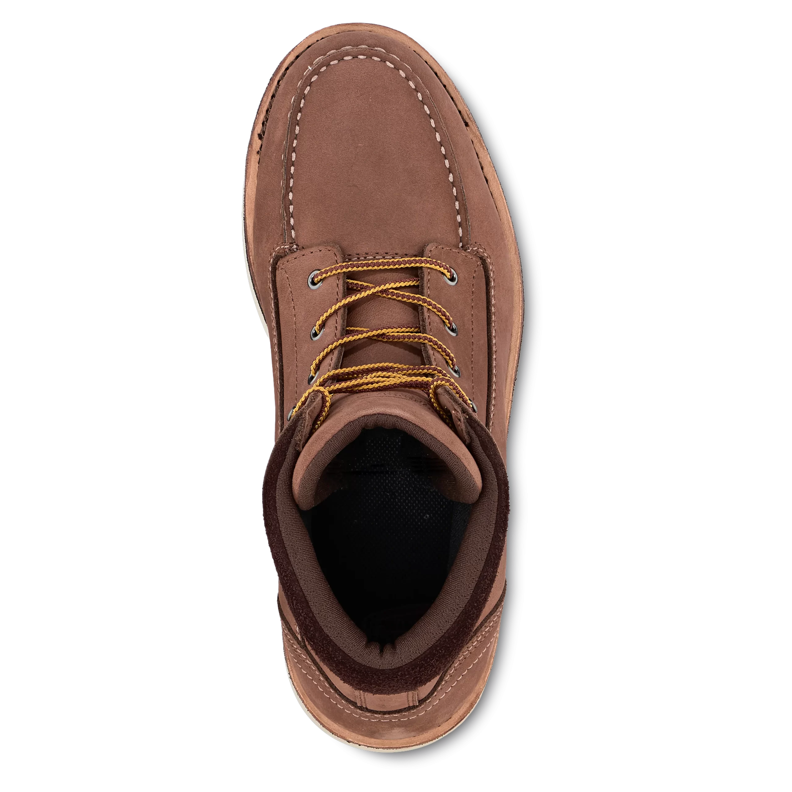Shaped to fit a woman’s foot, this lightweight version of the classic heavy-duty work boot with iconic flat-bottom sole provides exceptional stability and all-day comfort. It features a waterproof, 6-inch oiled Nubuck leather upper and electrical hazard protection, plus best-in-class slip resistance underneath. The extended suede leather collar offers extra cushioning around the ankles.